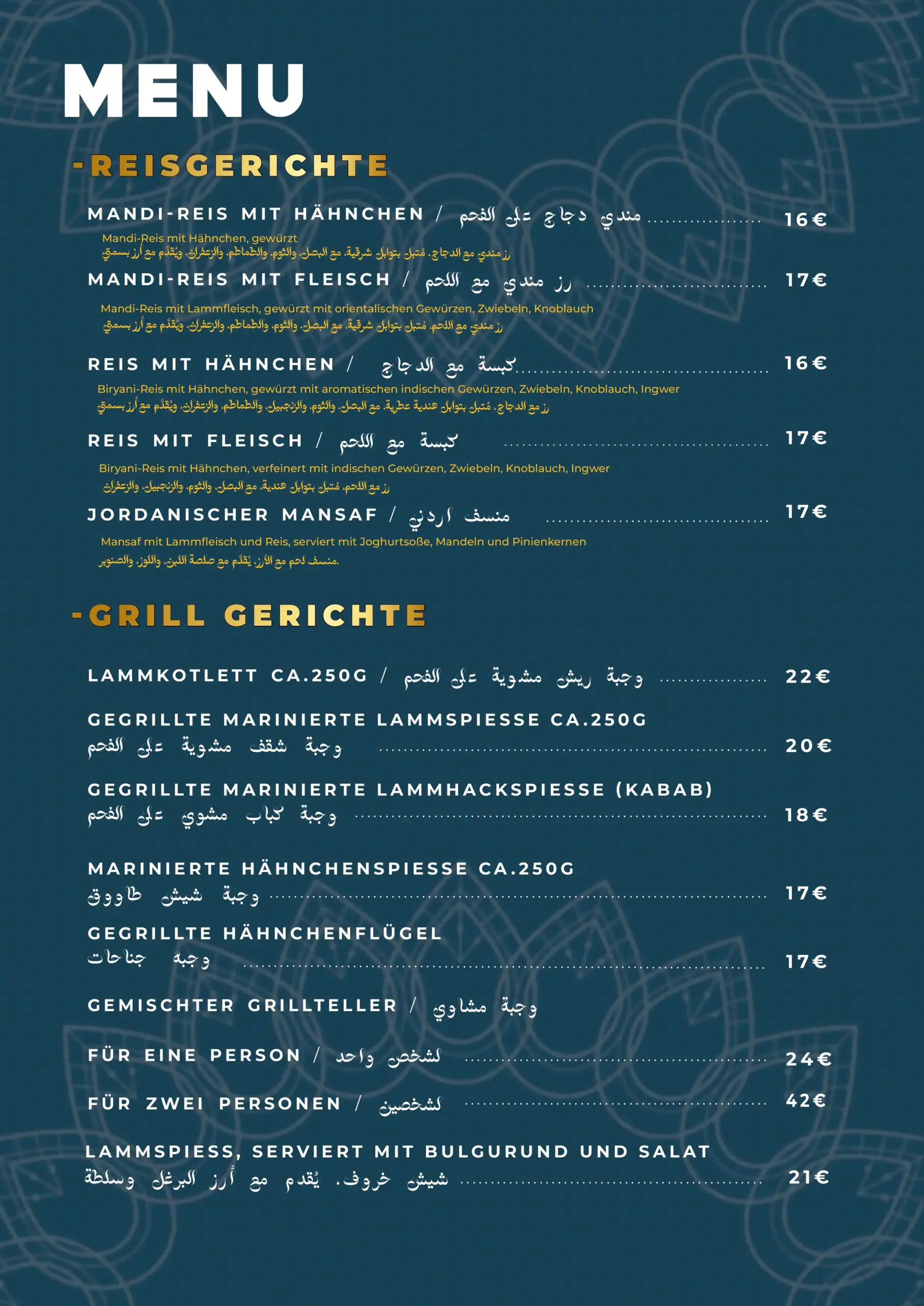 Mandi-Reis mit Lammfleisch, gewürzt mit orientalischen Gewürzen, Zwiebeln, Knoblauch